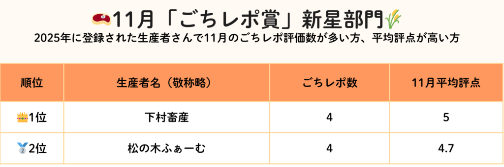 先月に高評価のごちレポを多数獲得した生産者さんをご紹介します!