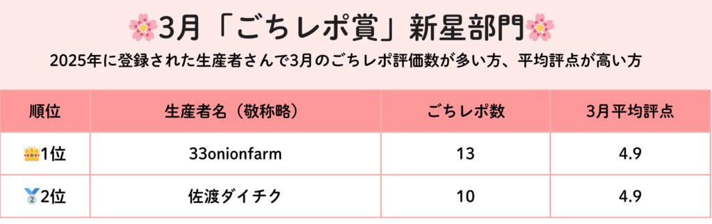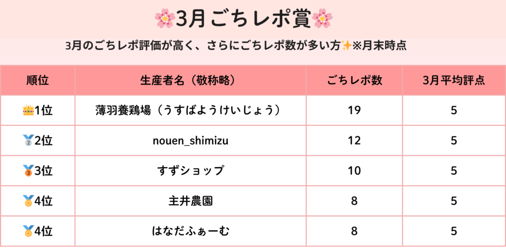 3月に高評価のごちレポを多数獲得した生産者さんをご紹介します!