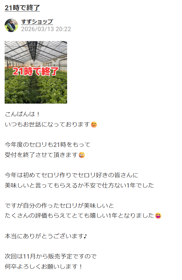 - メロンとセロリを出品されている生産者さん。3月は毎年大人気の大きなセロリのごちレポが集まりました!セロリが苦手なスタッフでもおいしくいただきました✨